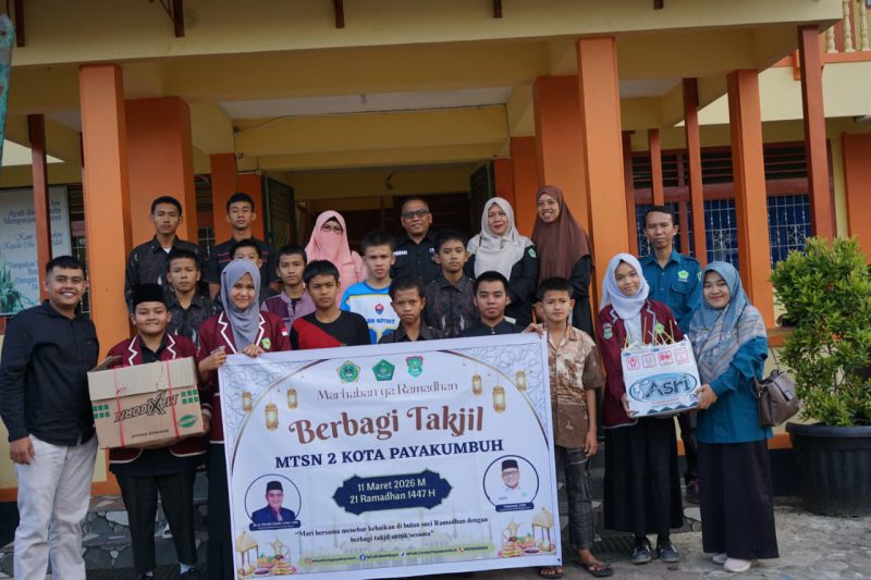 Payakumbuh — Semangat berbagi di bulan suci Ramadan kembali ditunjukkan oleh keluarga besar MTsN 2 Kota Payakumbuh melalui kegiatan berbagi