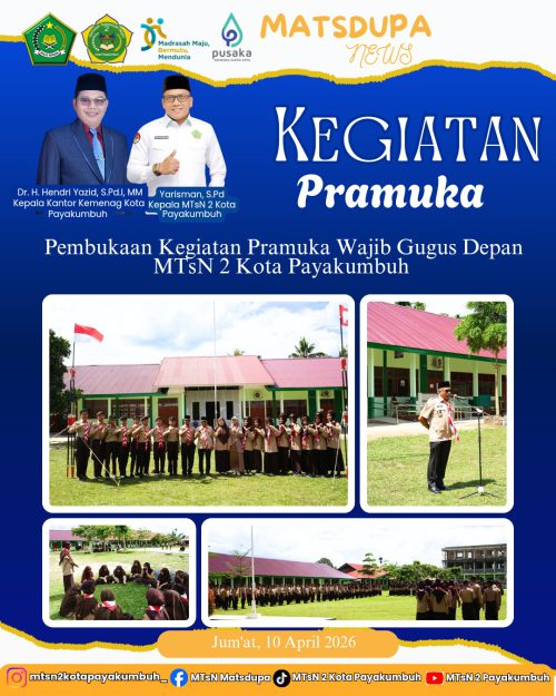 Payakumbuh, 10 April 2026- Kegiatan Pramuka Wajib Gugus Depan MTsN 2 Kota Payakumbuh dibuka langsung oleh Kepala Madrasah, Yarisman, S.Pd.