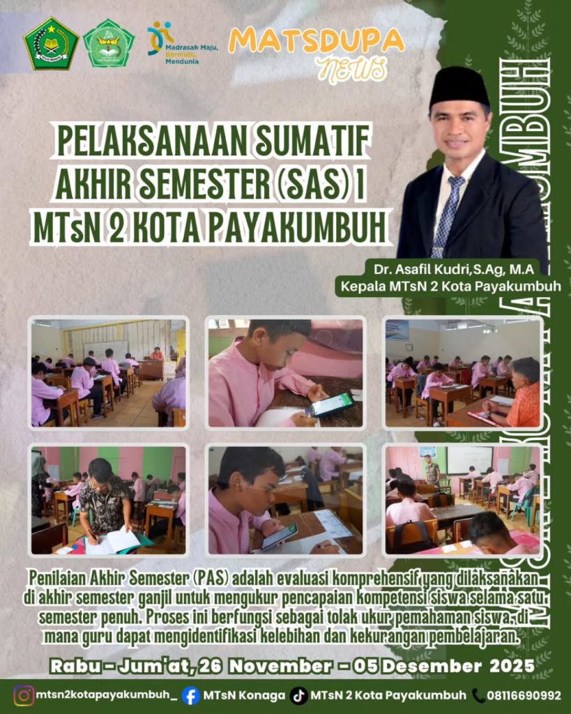 Pelaksanaan Sumatif Akhir Semester (SAS) I MTsN 2 Kota Payakumbuh Tahun Ajaran 2025/2026 Read More »