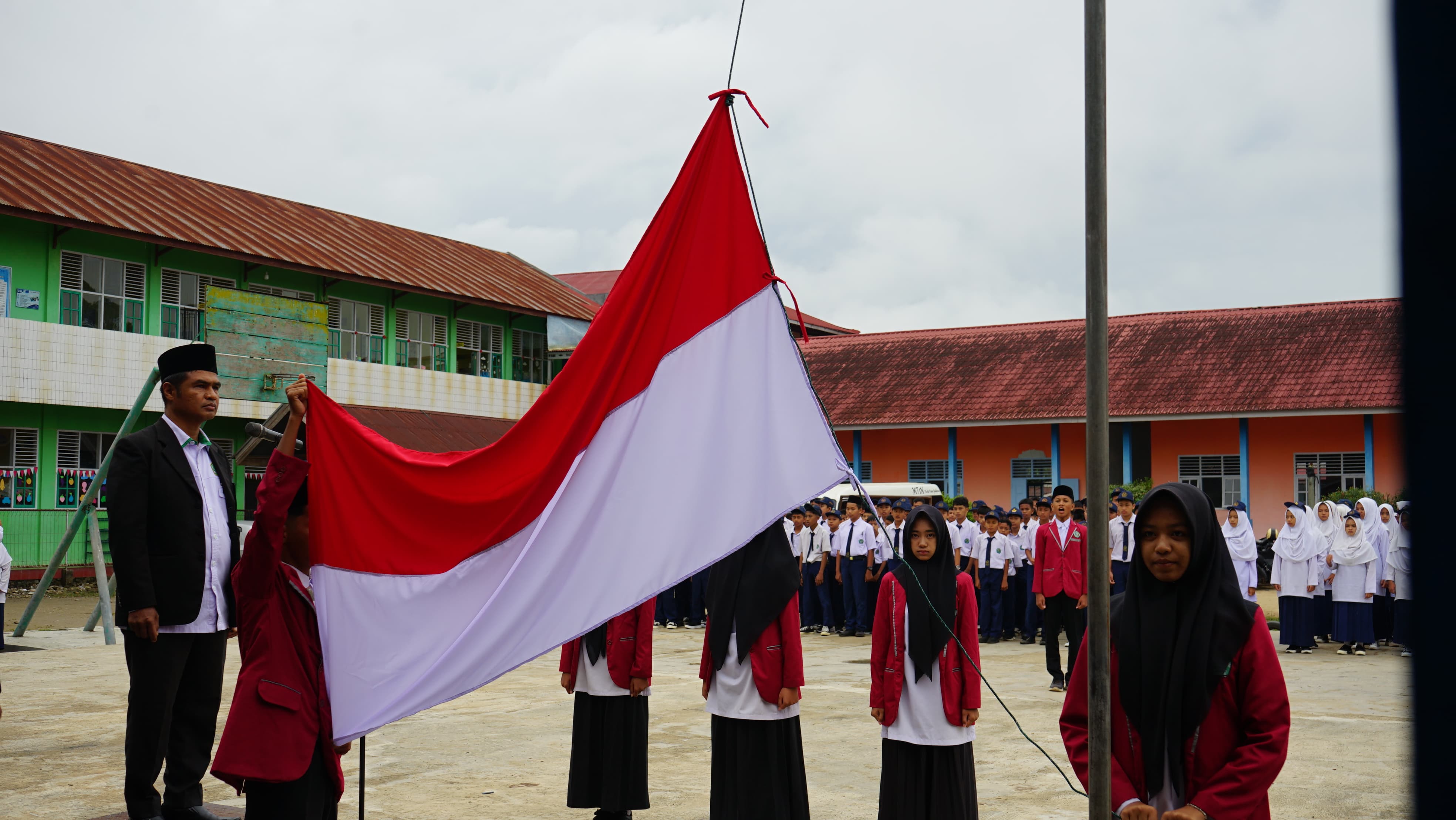 Upacara berjalan dengan lancar, diiringi semangat para peserta yang berdiri tegak menyanyikan lagu kebangsaan “Indonesia Raya” dengan penuh penghayatan. Cuaca pagi yang cerah menambah suasana khidmat dan membangkitkan semangat nasionalisme seluruh peserta.