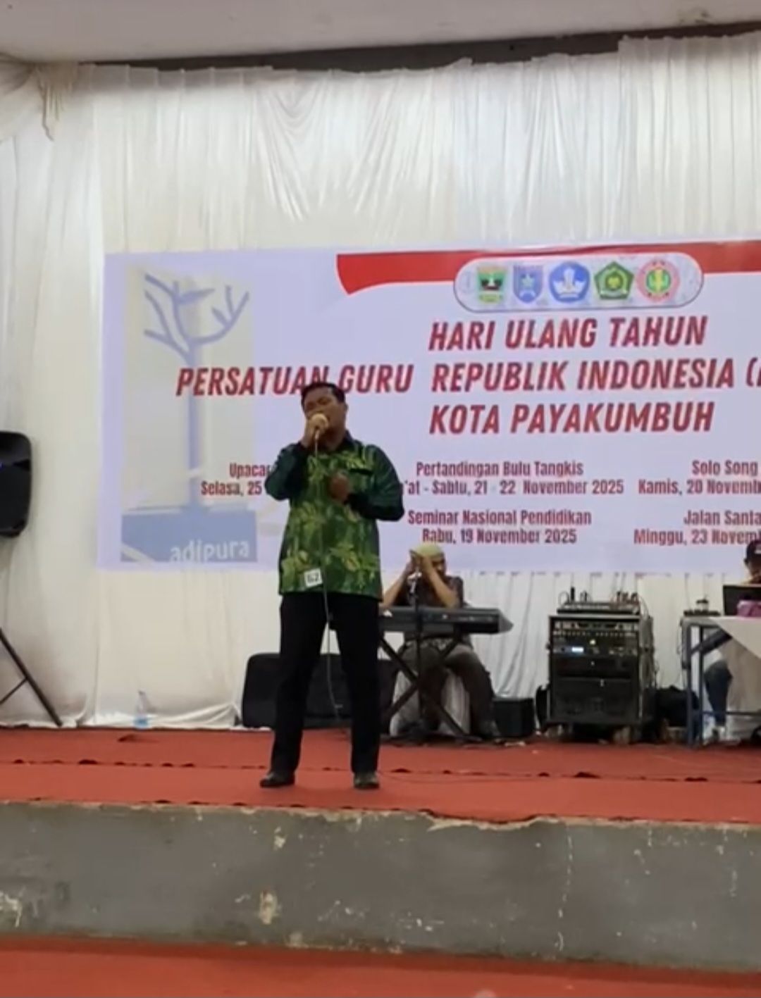 Ajang peringatan Hari Ulang Tahun PGRI Kota Payakumbuh tahun ini kembali menjadi panggung unjuk bakat bagi para pendidik. Bertempat di GOR M. Yamin Kota Payakumbuh, guru MTsN 2 Payakumbuh, Faldika Fakhriadi, berhasil meraih Juara 3 Lomba Solo Song kategori mahir, mengalahkan sejumlah peserta berbakat dari berbagai sekolah dan madrasah.